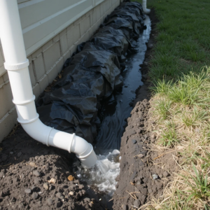 This setup is a downspout-to-French-drain water diversion system.