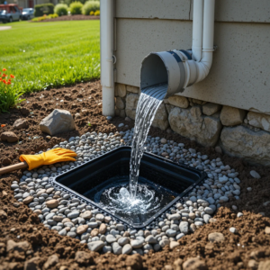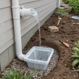 ✅ 5. French Drain Connected to Downspout